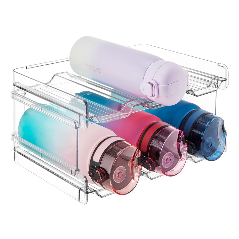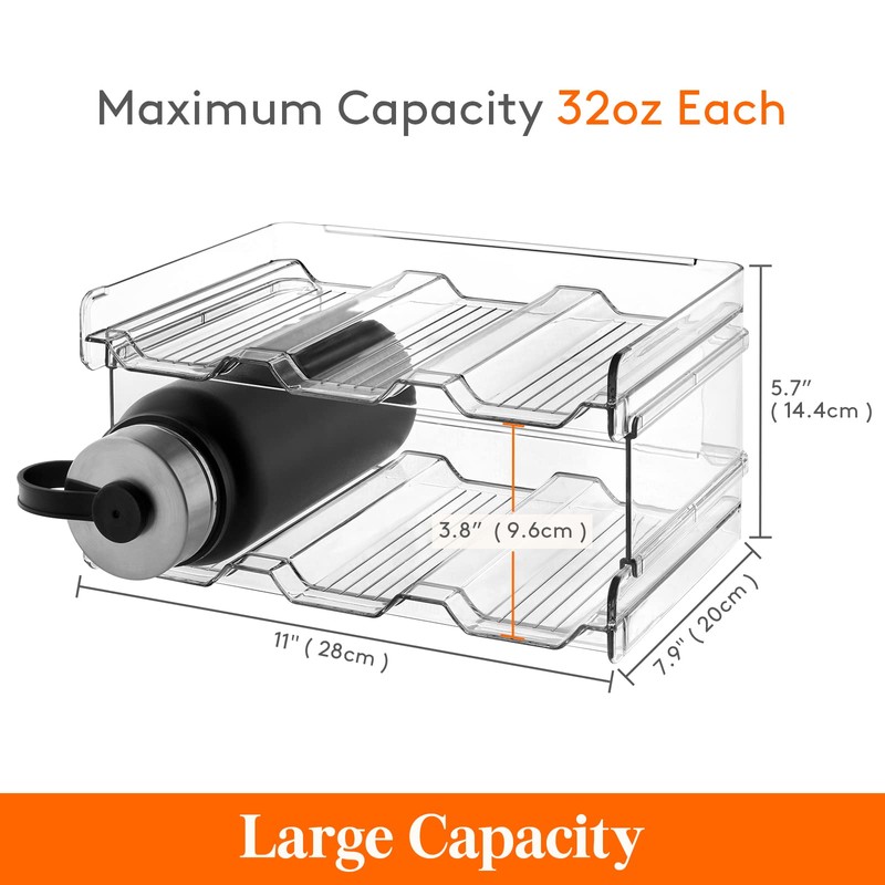 Lifewit Stackable Water Bottle Organizer for Cabinet, Freezer, Pantry - Plastic Cup Holder for Kitchen Office - Pack of 2, Each Rack Holds 3 Containers