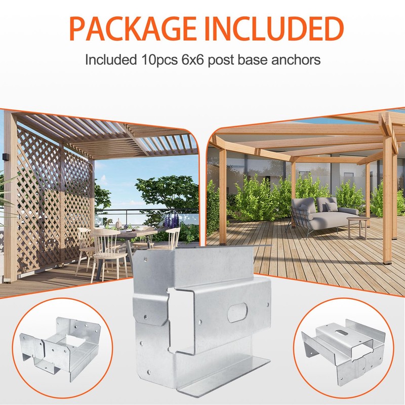 【Package Included】Included 4pcs 6"x6" Post Base Anchor.It will work great for your project.Great value and quality product for securing 6x6 post.
