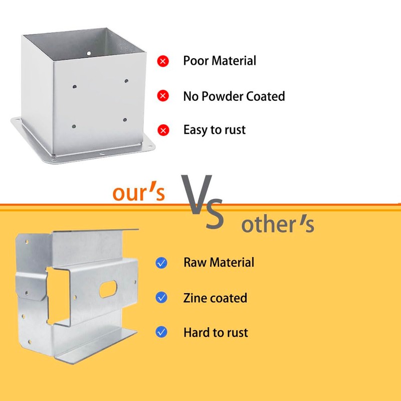 • 【Protect Your Wood】Our 6x6 post bracket has a 1" high standoff to prevent post end rot compared to other post brackets.Such a structure effectively extends the life of the wooden post.