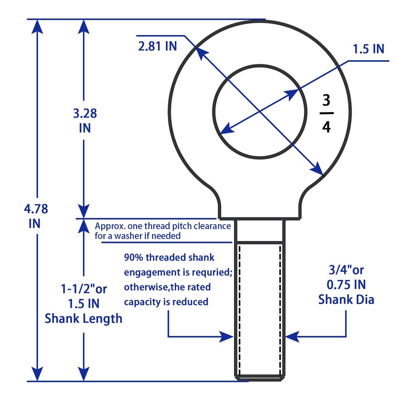 Lifting Shoulder Eye Bolt 3/4"-10 X 1-1/2", 1 PC, Industrial Grade Heavy Duty Forged Steel for Truck Tractor Bucket Use As Towing&Pulling Point
