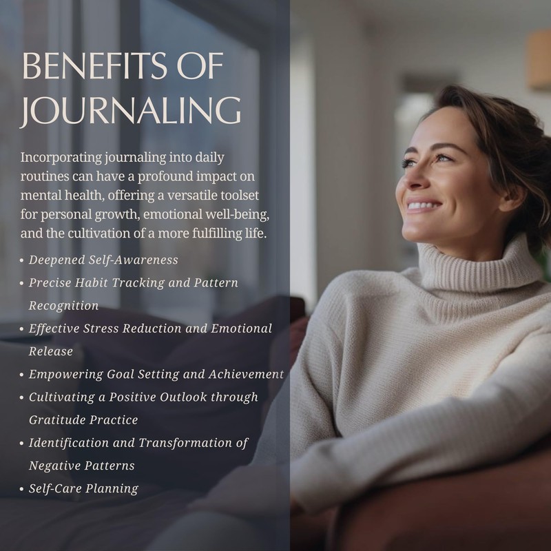 - 🗓️ DAILY & WEEKLY ENTRIES: Track daily emotions and engage in weekly reflections with this journal. Structured check-ins help spot patterns and triggers in your feelings. Week after week, you start understanding more about the changes you need to make to feel more aligned with yourself. Also includes daily, weekly and monthly habit/mood tracking.