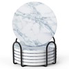- COASTERS WITH METAL HOLDER - Metal holder will storage these white marble coasters and save the space, also save time to constantly tidy up coasters. Neatly stack your coasters in this sleek coaster holder when not in use.