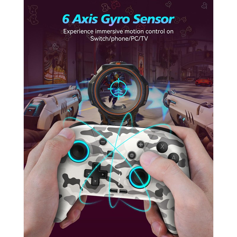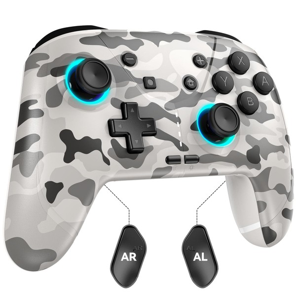 Ligame Switch Controller, Wireless Gamepad Compatible with Switch/Lite/OLED, Windows, Android and iOS, Support to Programming/Turbo/Motion/Wake-up/RGB Functions, White Camouflage
