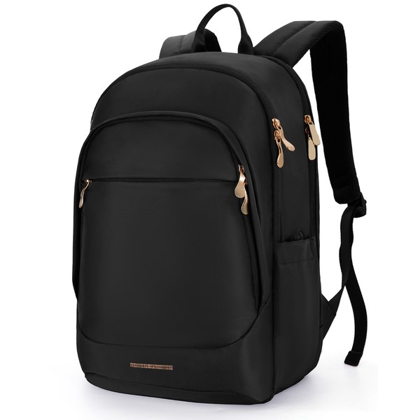 LIGHT FLIGHT Travel Backpack for Women, 15.6 Inch Laptop Backpack with USB Charging Hole, Water Resistant College Bookbag, Large Capacity Black Computer Backpacks for Work, Black