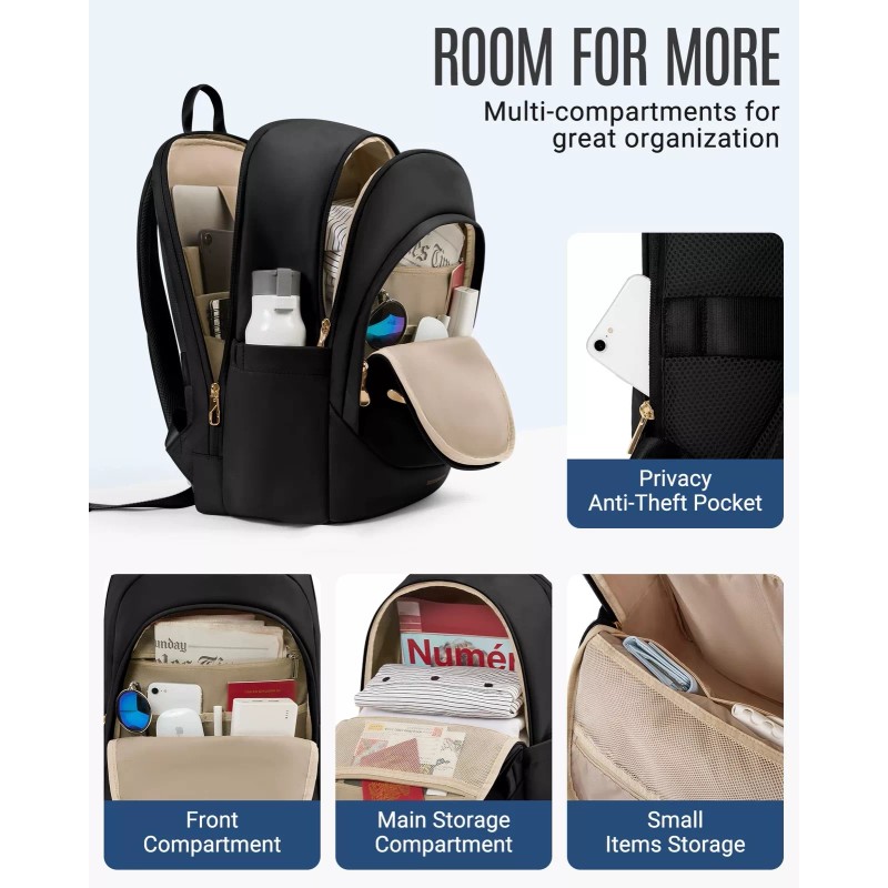 LIGHT FLIGHT Travel Backpack for Women, 15.6 Inch Anti Theft Laptop Backpack ...
