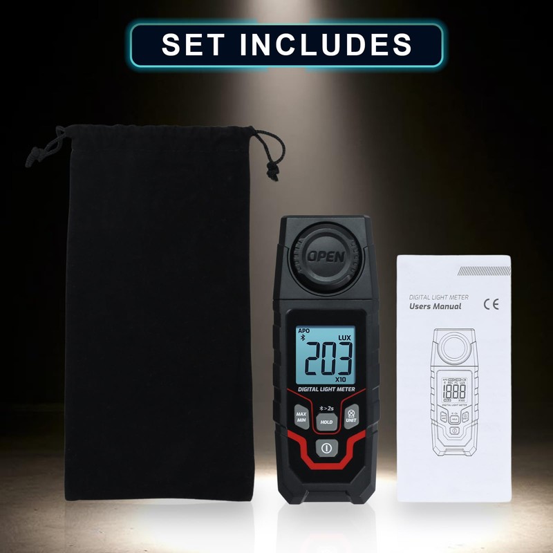 - ✅【Bluetooth Connection& Data Logging】This light meter is able to record real-time measuring value and export data when connect to APP, enabling easy data logging and analysis on compatible devices