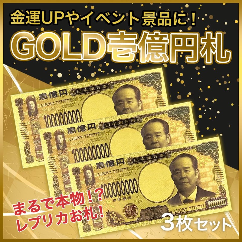 LIGHT PLANET Gold Bills, Set of 3, Replica, 10,000 Yen, New Money Luck Up, Gold, Feng Shui Money Lucky Amulet, Good Luck Item, Money Luck Bills (100 Million Yen)