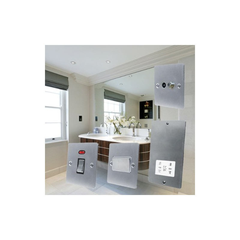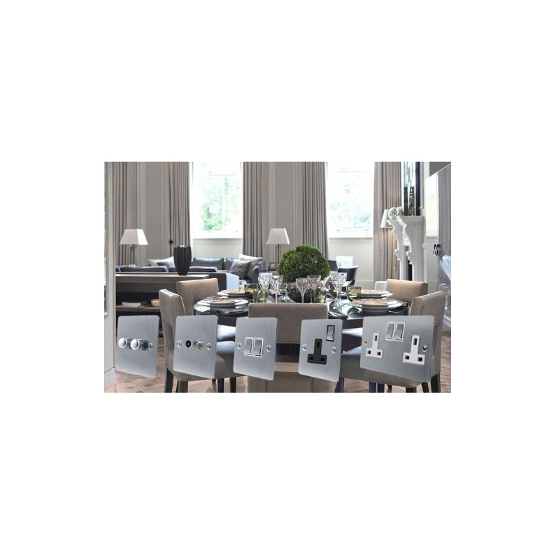 - Satin Brushed Matt Chrome Finish Metal Plate - Black Insert - Metal Rocker Switches