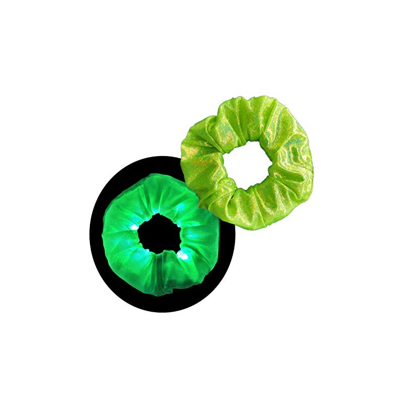 These scrunchies are beautiful with or without the LED light on. The LED lights makes the scrunchie glow bright. Each light up scrunchie has three different light modes. Press button once for fast blinking. Press button twice to change to slower blinking light. Press button three times to turn to a solid light. Press button four times to turn off. Each hair scrunchie is made from soft organza sparkly shiny fabric Batteries are included and has a battery life of over 72 continued use. The LED lights take (2) CR2032 batteries, which are included. Many colors available! Red, orange, yellow, green, blue, navy blue, lilac, purple, pink, magenta, brown, black, silver, & multicolor. MADE IN THE USA
