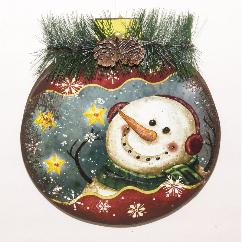 - Light-Up Snowman Wall Hanging is approximately 9" high by 8" wide.