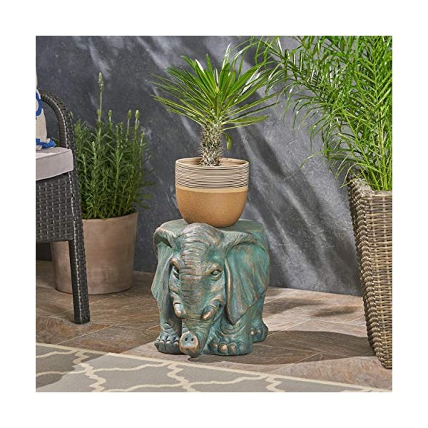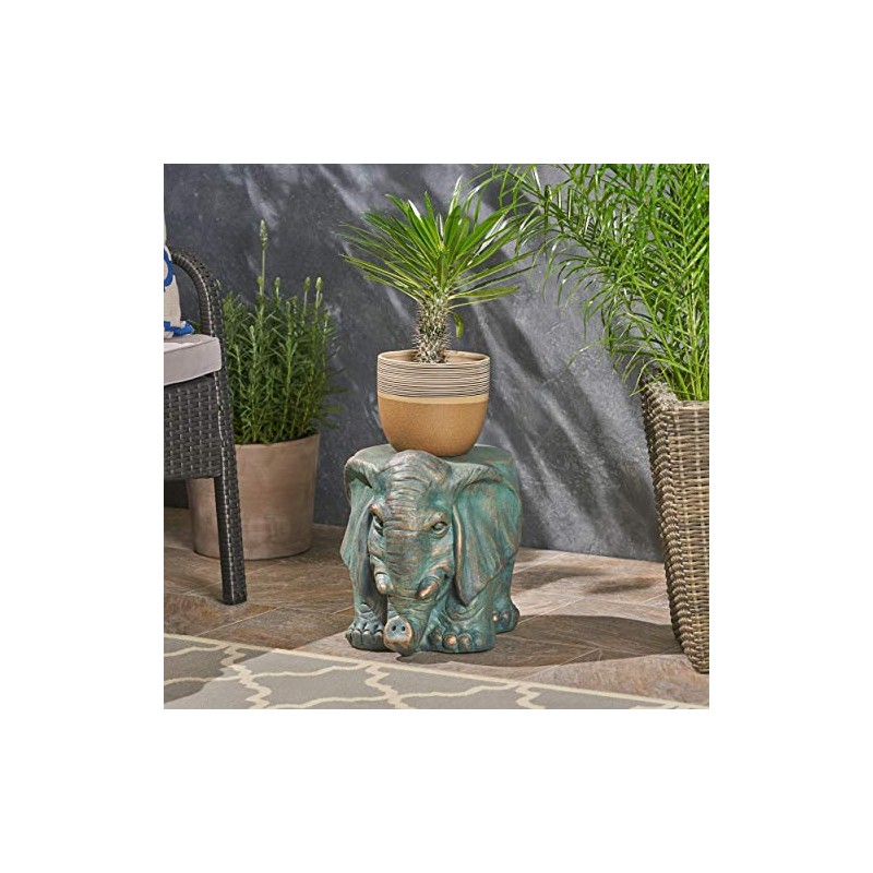 - Includes: One (1) Elephant Garden Stool. Material Info: Lightweight Concrete. Color: Copper Patina Finish. Hand-Crafted Details. Assembly Required:No. Style : Modern & Contemporary. Material : Stone. Type : Stools. Assembly : Assembled. Season or holiday : All Seasons. Color : Gold. Dimensions : 11.25 In. X 13.25 In. X 12.5 In