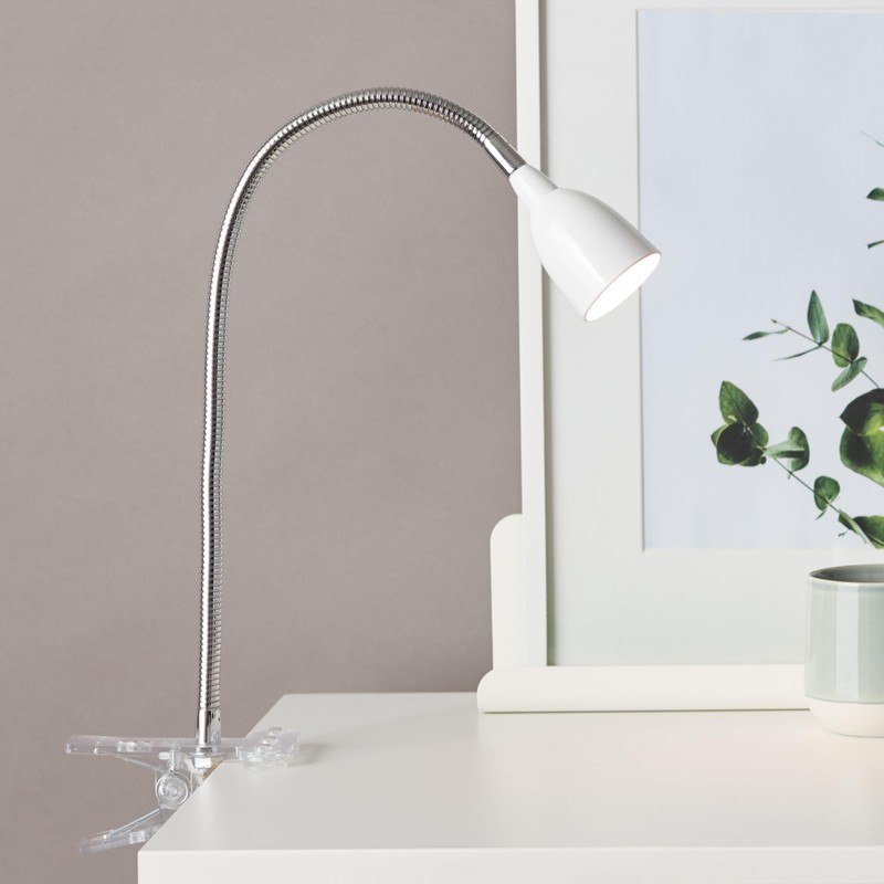 Lightbox LED Desk Lamp, Clamp Light with Switch and Adjustable Flexible Joint, 38 cm Height, 2.4 W, 250 lm, 3000 K, Metal / Plastic in Iron / White