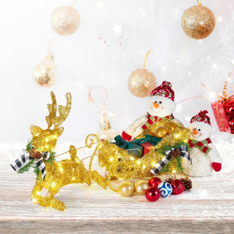 - Versatile Use: Whether placed on your lawn, porch, or tabletop, the gold Christmas sleigh adds a festive touch to any setting. Its compact size and charming design make it perfect for creating a warm, welcoming holiday atmosphere in your home or yard