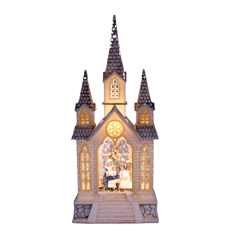 Lighted Water Lantern Church with Nativity Scene and Swirling Glitter, Includes Timer, Religious Christmas Decor, 16 Inches High