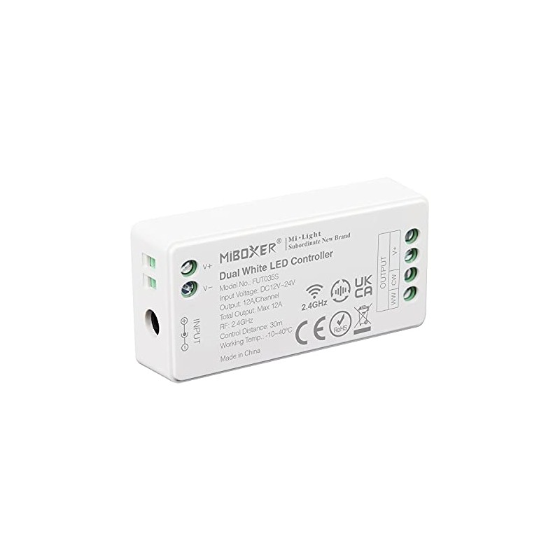 LIGHTEU®, Milight Miboxer 2.4GHz Color temperature dual white LED strip controller DC12V/24V output Max.12A, FUT035S