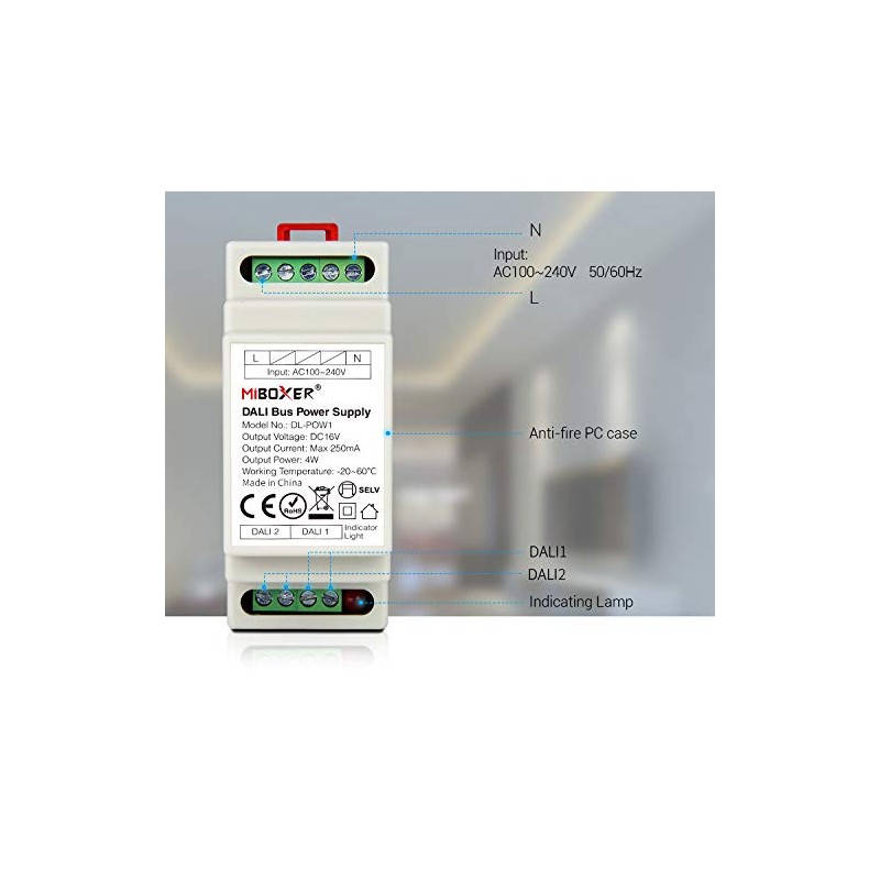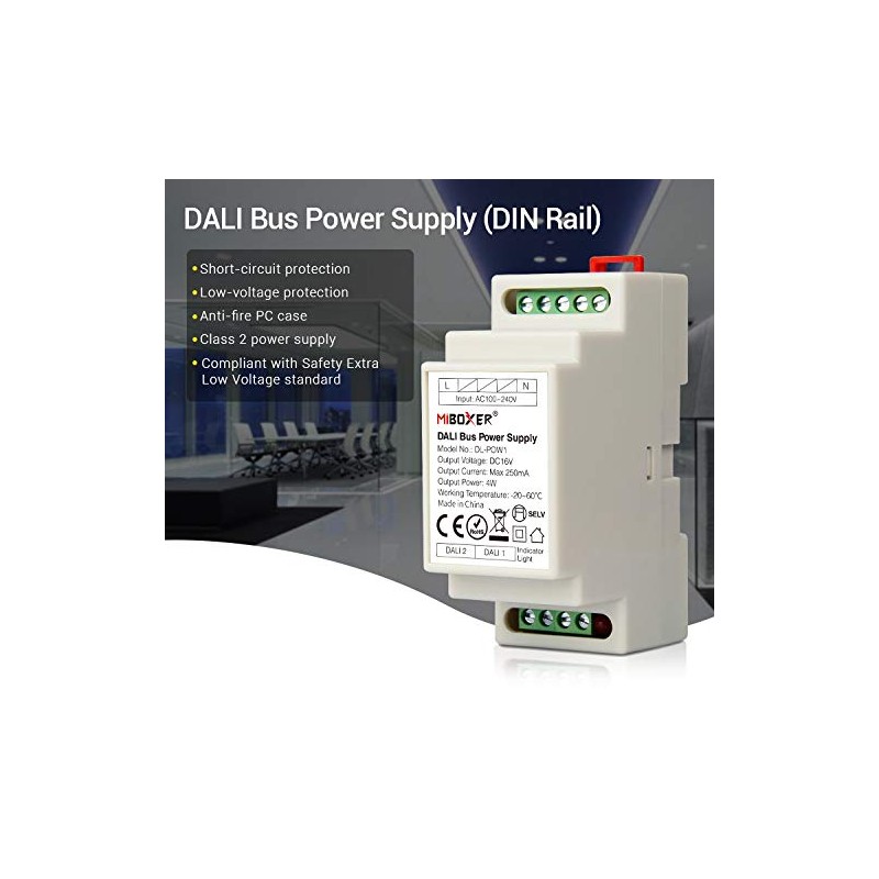 • DALI Bus Power Supply (DIN Rail) is a newly developed DALI BUS Power Supply, up to Class 2 power supply standard and SELV safety extra-low voltage standard