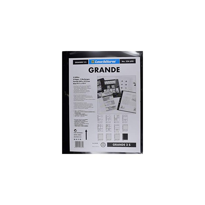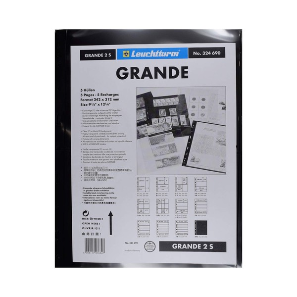 - GRANDE 2S double-sided, black background pages are designed to hold larger American, Canadian, and other worldwide covers.