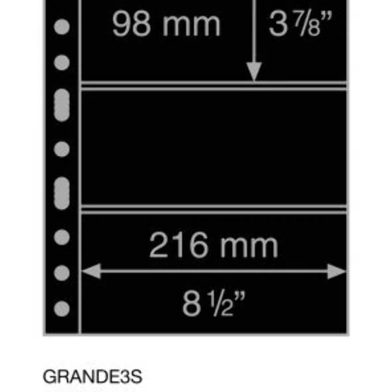 - GRANDE 3S double-sided, black background pages are designed to hold horizontally oriented covers and philatelic items.