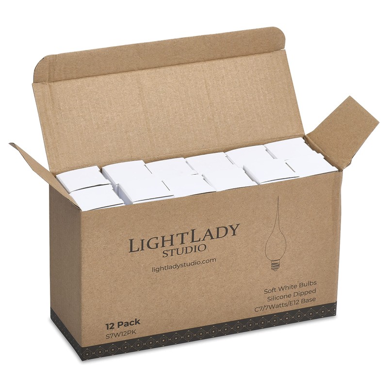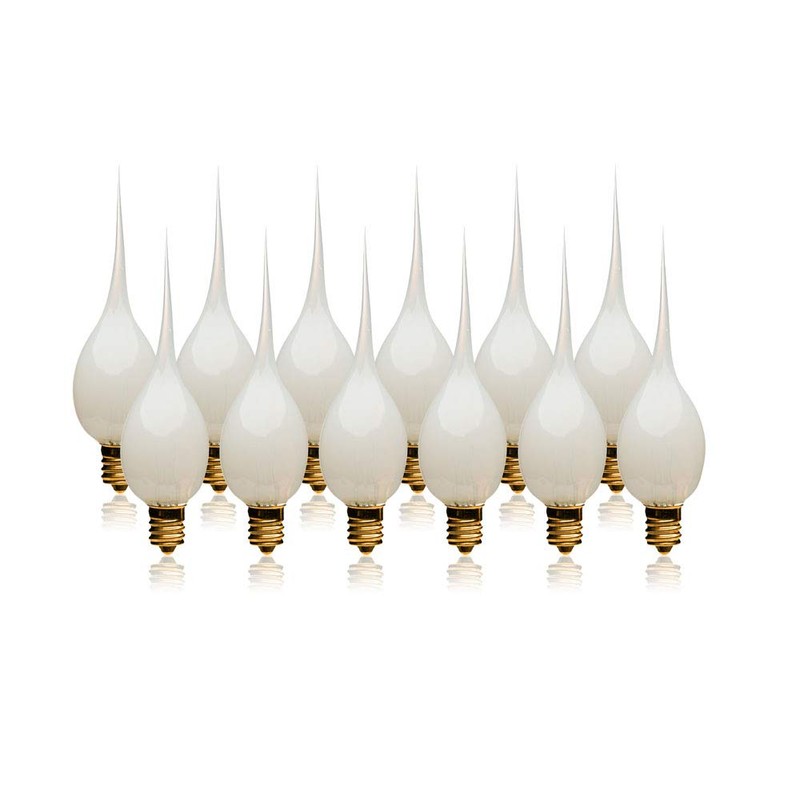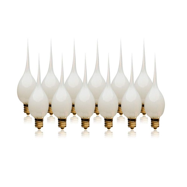 LightLady Studio Silicone Light Bulbs for Candle Lamps, 7 Watts, 12 Pack Dipped Candle Bulbs for Window Candles, Candelabra, Handmade White Flame Shaped Design