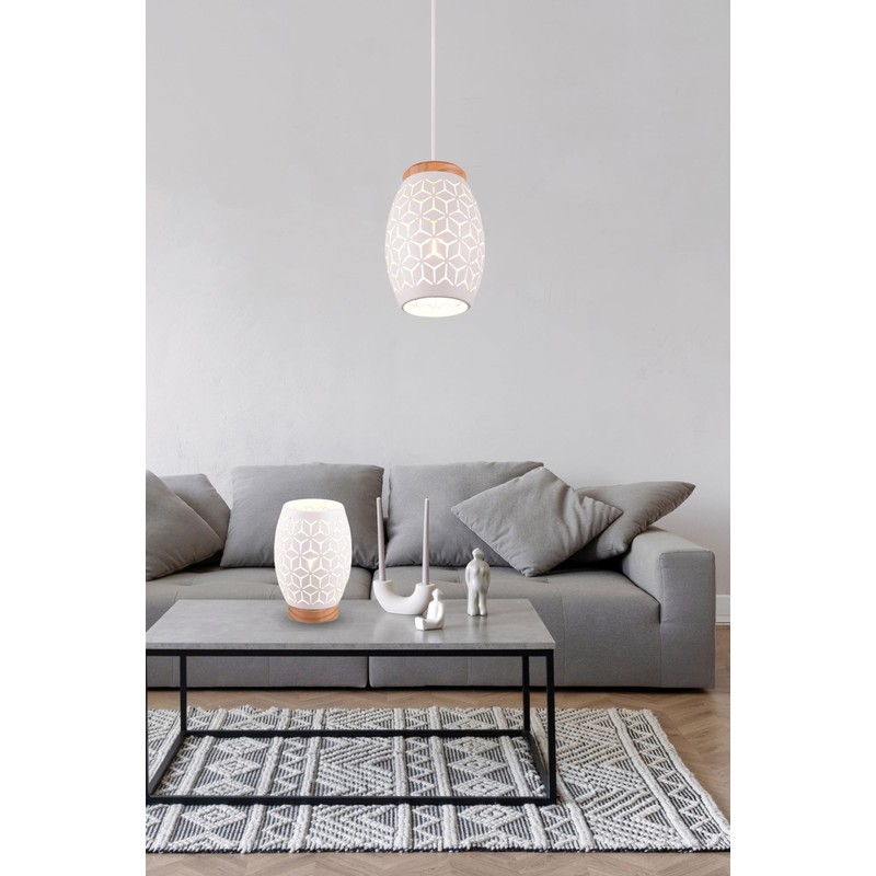The Bill table lamp brings a special feel-good light into your home and becomes the shining centerpiece of every chest of drawers or side table. The soft light shines through the delicate patterns and creates a unique play of light in the environment. Natural wood accents enhance the warm feeling of comfort. Bill is a visual highlight with a cozy flair! The metal and the natural wooden elements create an exciting decorative element. For energy-saving lighting, LED lamps are recommended, which save up to 80% energy and offer high light quality. Benefit from durability, low heat generation and environmental friendliness!