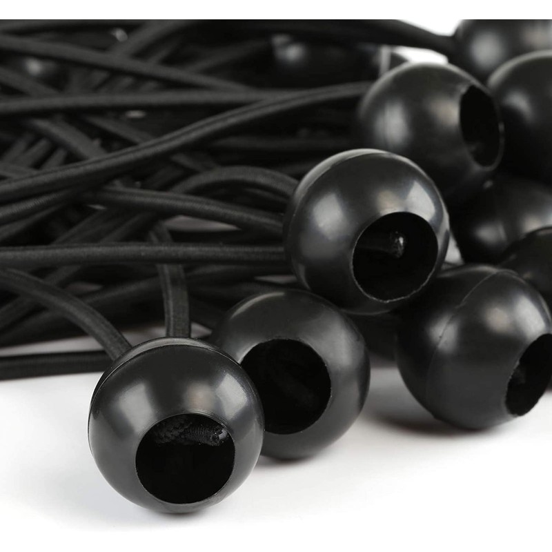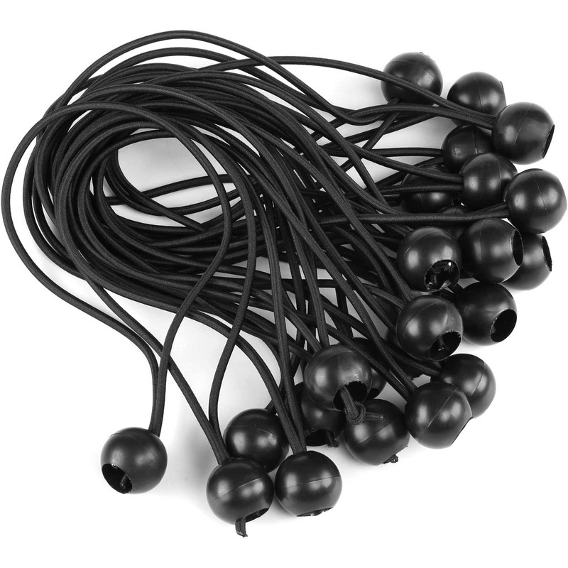 LIHAO Bungee Cord, Ball Stop, Elastic 25 Pieces, Cord, Fixing, Camping, Tent, Rope, Tarp Cushion Cord, Maximum Length 17.7 inches (45 cm), Black