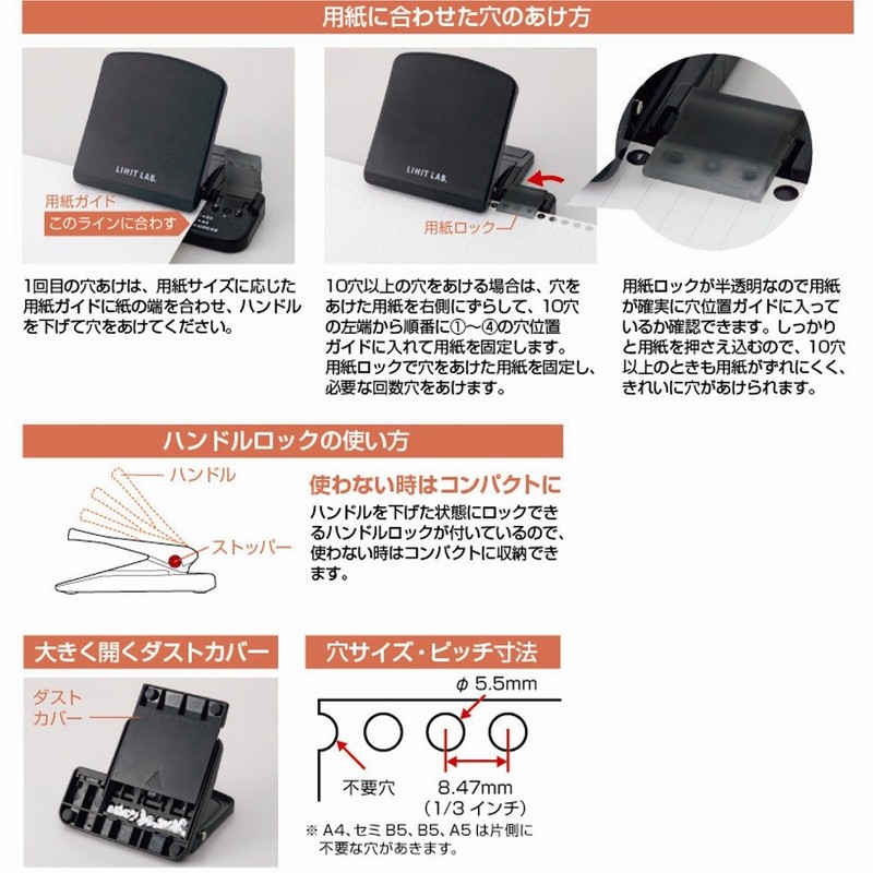 - [Features] By punching multiple times, you can make a note leaf according to the size of the paper
