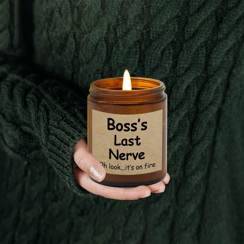 - FUNNY BOSS DAY GIFTS: Celebrate your boss with a touch of humor with our LiHome Vanilla Coconut scented candle. Featuring the playful message "Boss's Last Nerve... Oh look... it's on fire", it's the perfect way to show appreciation on Boss’s Day, birthdays, Christmas, or any day you want to acknowledge their dedication and hard work.