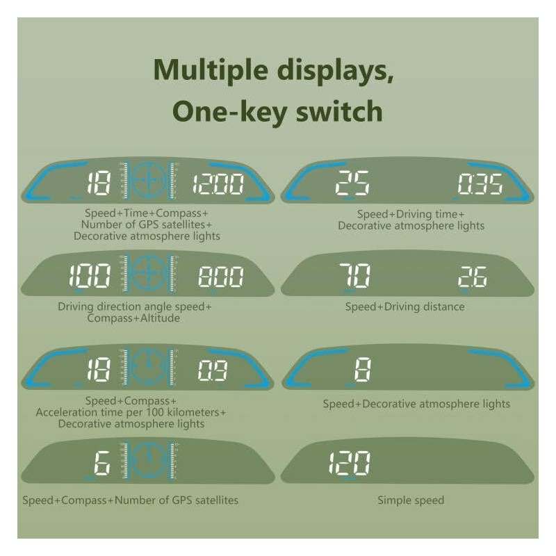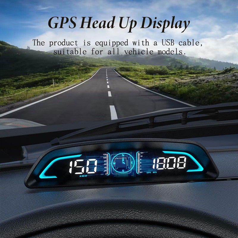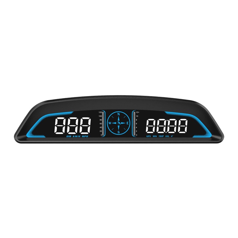 - 【 HUD Description 】: This head up display adopts a rectangular arc design, which can directly display the digital driving speed of the car on the high-definition display screen, and adds a compass in the middle of the numbers, adding aesthetics and practicality. This type of HUD has no ghosting even in the midday sunlight, and can be clearly seen both day and night.