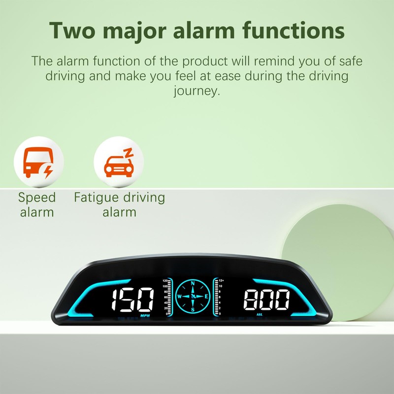 - 【Function】:The product features include speed, clock, driving direction, single distance, single driving time, number of stars searched, accelerator time per 100 kilometers, driving direction angle, speed alarm, fatigue driving reminder, switching between kilometers, and automatic brightness adjustment.
