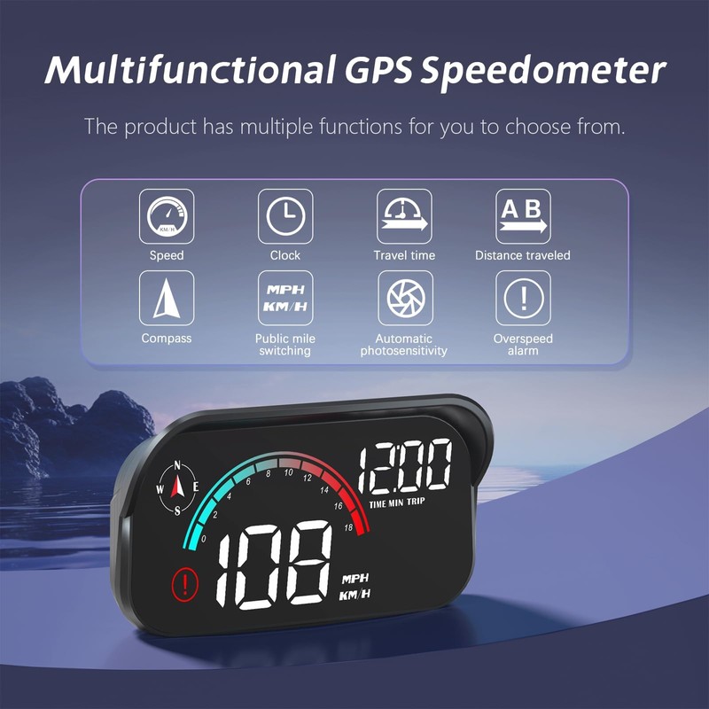 - 【Smooth & Accurate Speed Tracking】 Equipped with a high-performance chip, this car HUD head up display provides real-time speed updates with zero delay. The speedometer displays data in a smooth, digital format, matching your car’s dashboard for precise and easy-to-read information.