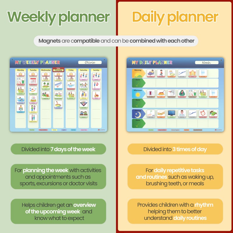 - LEARNING & UNDERSTANDING ROUTINES - Our magnetic daily planner promotes independence and confidence for children. The planner helps them better understand the day and grasp routines