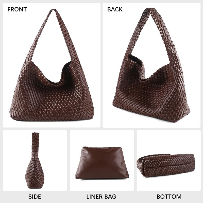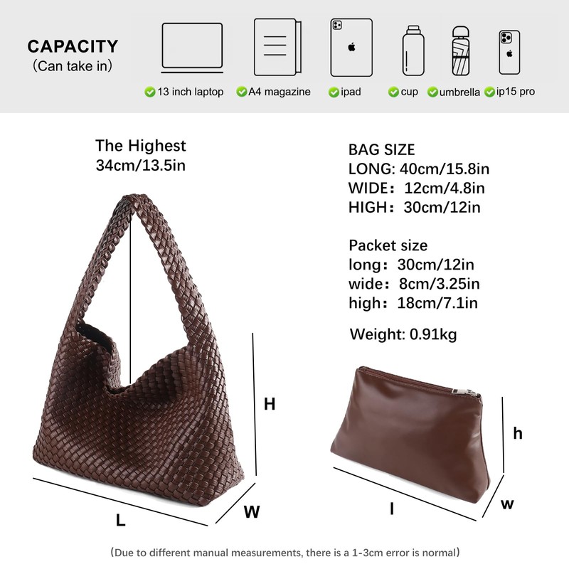 - 【Enough capacity】 Handbag: 15.8L*4.8W*12H inches, portable height is 13.5 inches. Clutch: 12L*3.25W*7.1H inches. Its weight is 2 pounds.This woven bag can be used as a purse,hand bag, tote bag and shoulder bag.The Perfect tote bag For Women, Ladies and Girls, perfect for daily use.The bag is small in size, but it can hold daily essentials such as mobile phone, glasses, lipstick, keys and other small items.
