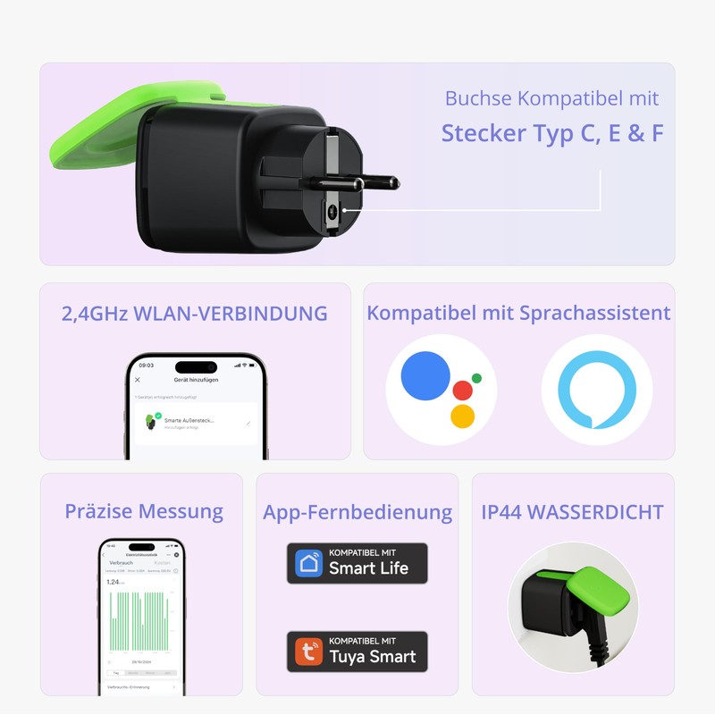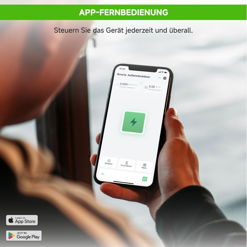 LIKEFE Intelligent Socket, Monitor Power Consumption & Electricity Costs, IP44 Waterproof Smart Outdoor Socket, WLAN Socket with Timer Switch, App Remote Control & Voice Control, 2.4GHz
