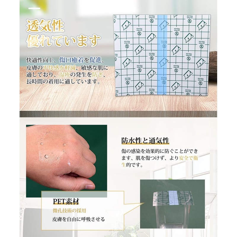 - 【高品質の素材】ETバッキング、PUフィルム、医療用感圧性接着剤および剥離紙で構成されています。色は透明で、幅広い用途に使用できるため、傷の感染を効果的に防ぐことができます、肌を傷つけず、より安全で衛生的です。