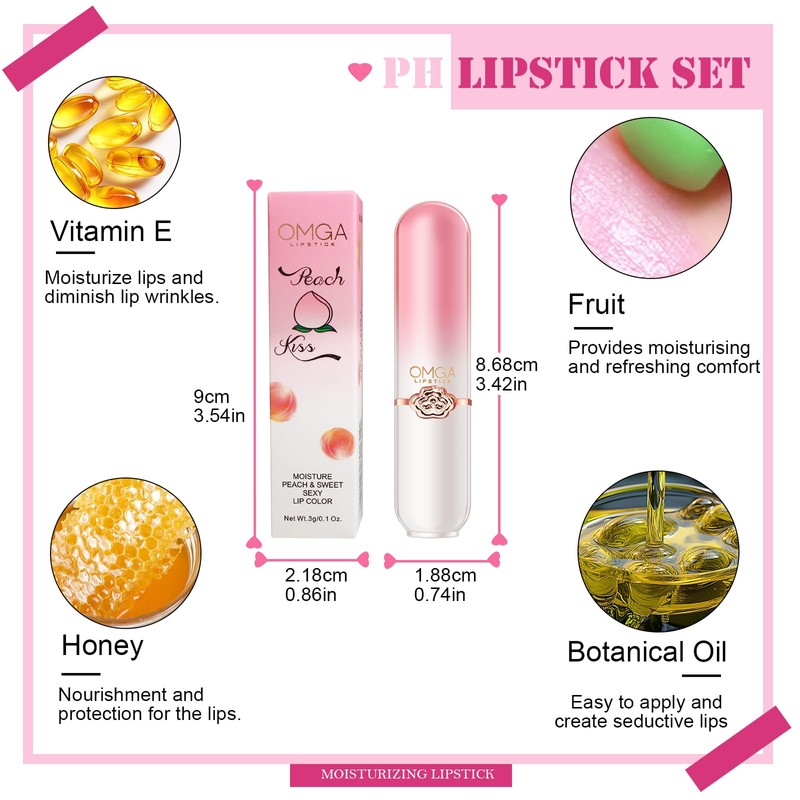 - Colour changing tinted lip balm: the colour of the moisturising lipstick improves and adapts the colour of your lip colour to the actual pH changes of your lip temperature and moisture, you will be surprised that you have your own unique lip balm. Create an enchanting lip colour, create your own, personalised colour, keep your lips moisturised and supple