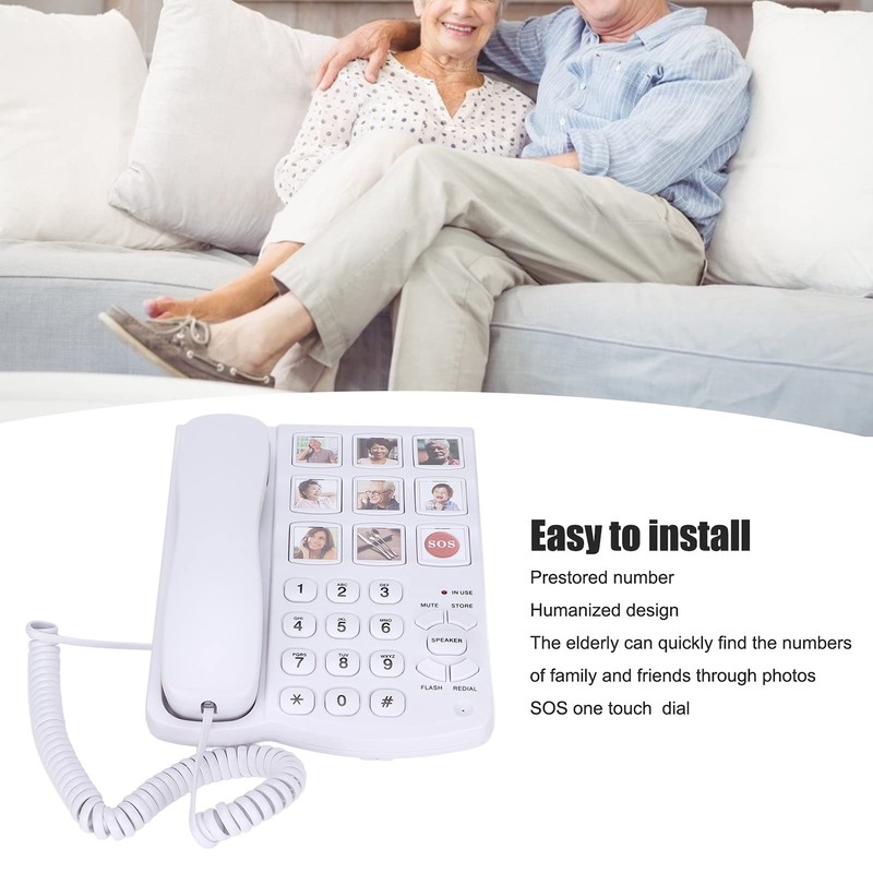 - ◑♛◑【HUMANIZED DESIGN】You can replace 9 pictures of your family and friends on the keyboard. It helps the elderly to quickly find the numbers. This big button phone can pre store home number, SOS number and meal order number. It is easy for the elderly to make calls, this push button telephone is an easy phone for seniors