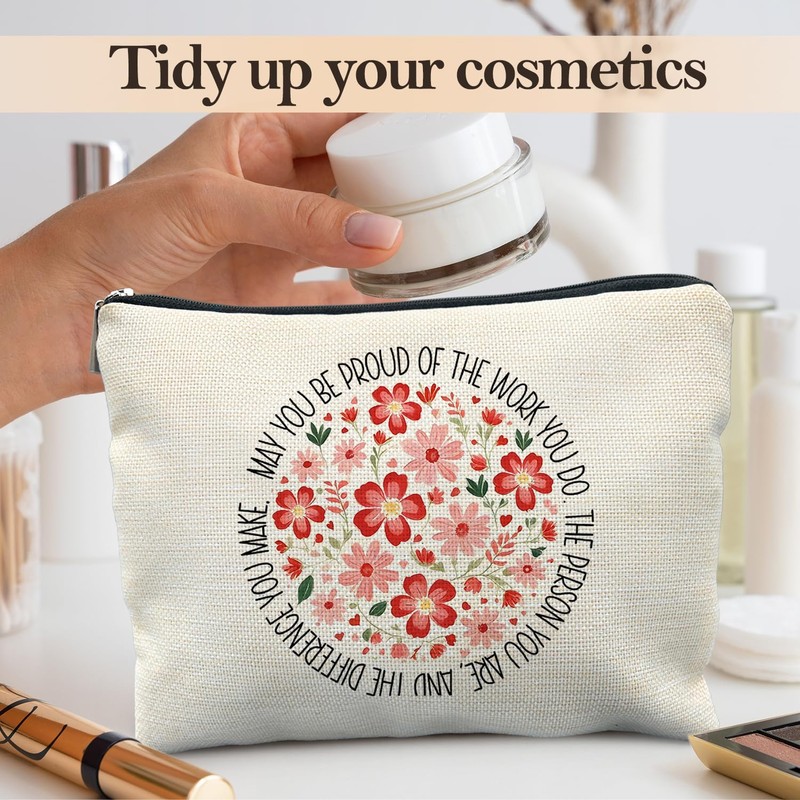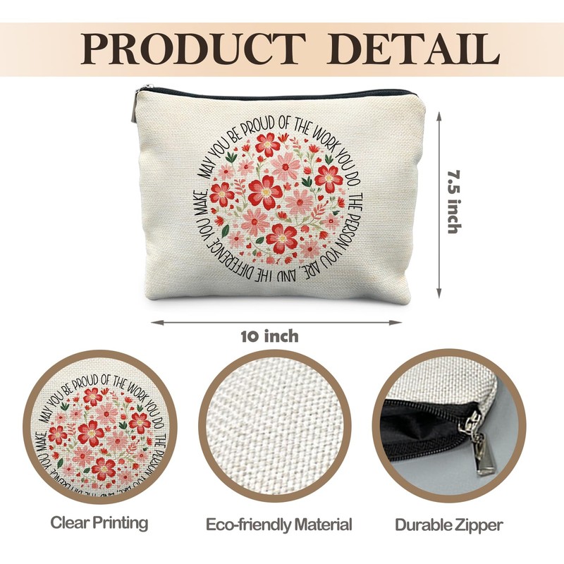 - MATERIAL: The makeup bag has a metal zipper and black lining