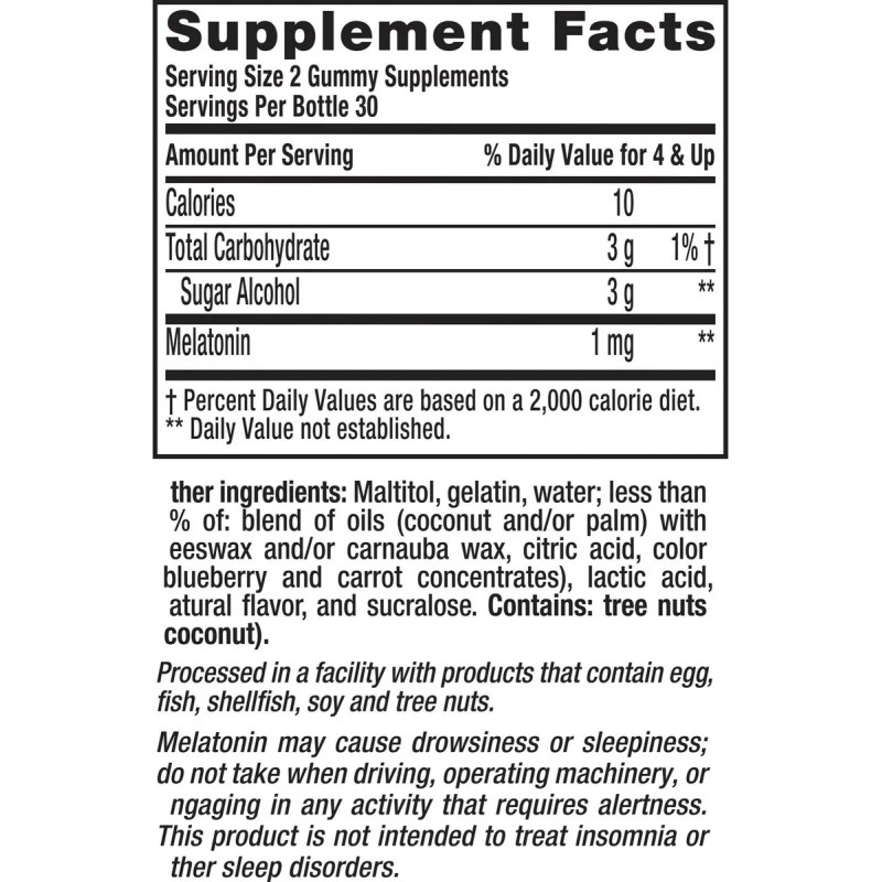 🌜 Melatonina (1 mg por gomita): Ayuda a regular el ciclo del sueño y facilitar el descanso nocturno de forma natural