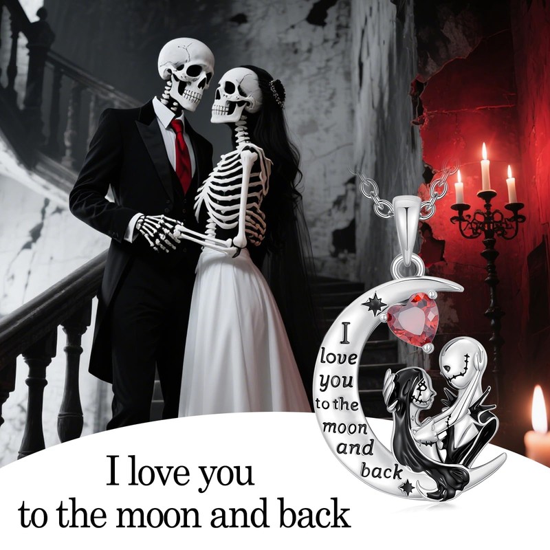 LILALO Nightmare Necklace Gifts Sterling Silver Moon Jack and Sally Necklaces I Love You to the Moon and Back Skull Jewelry Anniversary Christmas Gift for Women Wife Girlfriend Daughter