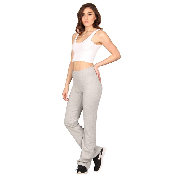 Lildy Women’s Cotton Blend Yoga Pants, High Waistband Straight Legged No See Through Material, Heather Grey, Small/Medium