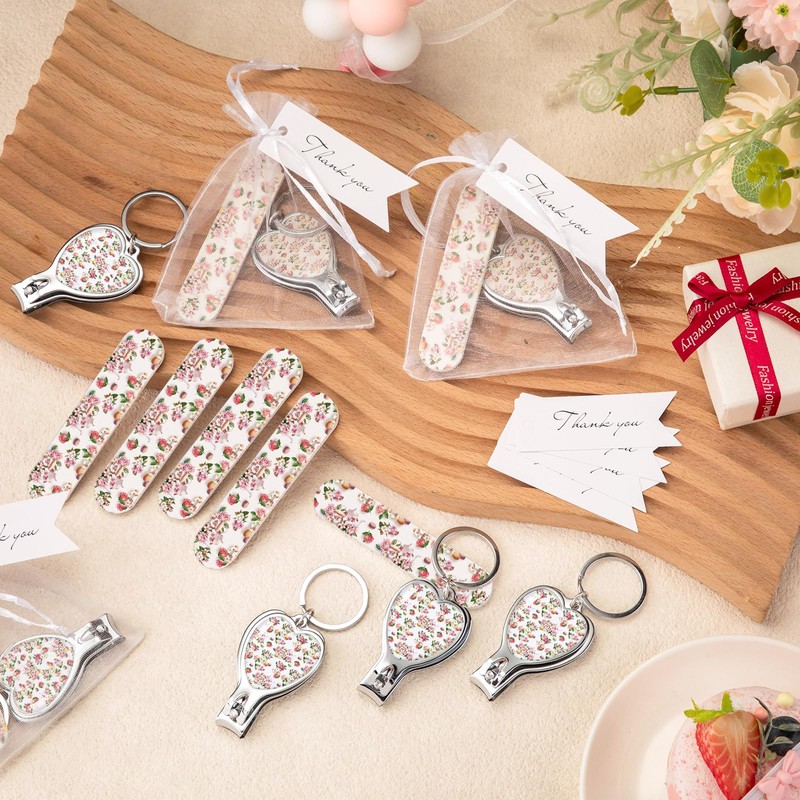 - Bridal Shower Thank You Gifts: our wedding souvenirs include 30 heart shaped multi functional bottle openers, 30 nail files, 30 thank you tags and 30 white organize bags; These items can meet your daily use and gift giving needs at various parties; The included cards and transparent gauze bags make it an ideal gift wrap to express your gratitude