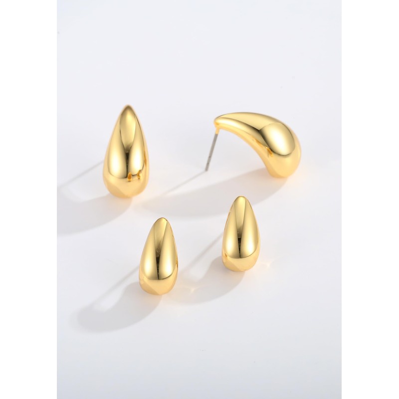 - Sophisticated Teardrop Designs - This set features 2 pairs of gold-plated earrings with sleek teardrop and curved waterdrop designs, offering an elegant and timeless look for any occasion.