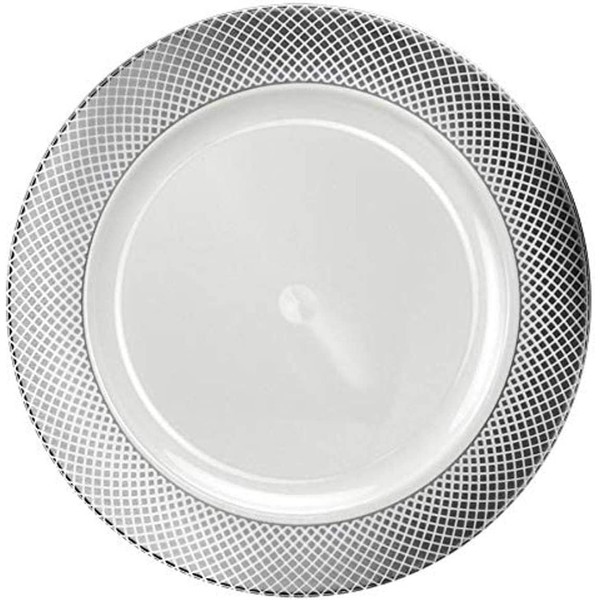 Lillian Collection Diamond Rim Plastic Charger Plates - 12", Silver, 10 Pcs