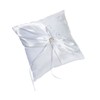 - Stylish ring pillow is covered in white satin