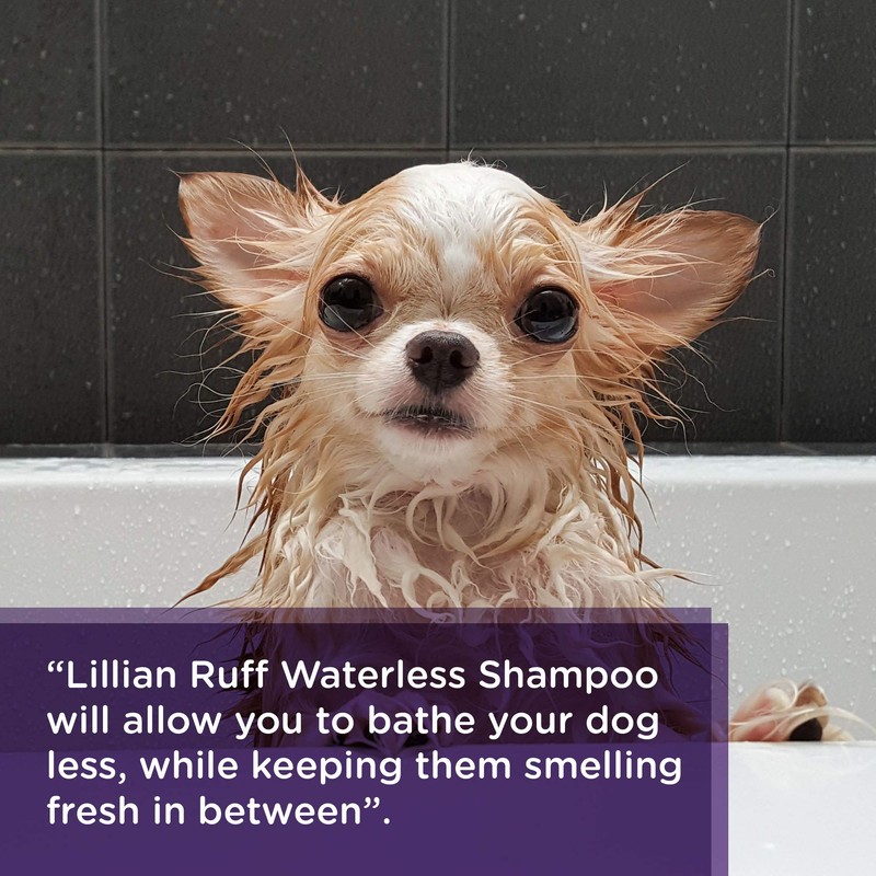 - KEEP YOUR DOG OR CAT SMELLING FRESH – Some dogs hate water so much that they make it incredibly difficult to bathe them. Lillian Ruff waterless shampoo will allow you to bathe your dog less, while still keeping them smelling fresh in between. They will love it as you rub it through their fur. Other dogs love bath time, but it is not always convenient to bathe them nor is it healthy for their skin to over bathe them. Lillian Ruff waterless shampoo will help you bridge that gap.