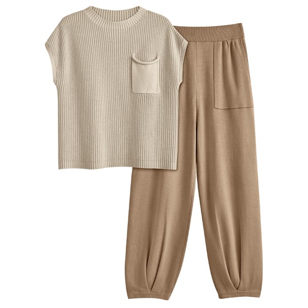 LILLUSORY 2 Piece Knit Sets For Women Trendy Sweatsuit Sets, Light Khaki, S