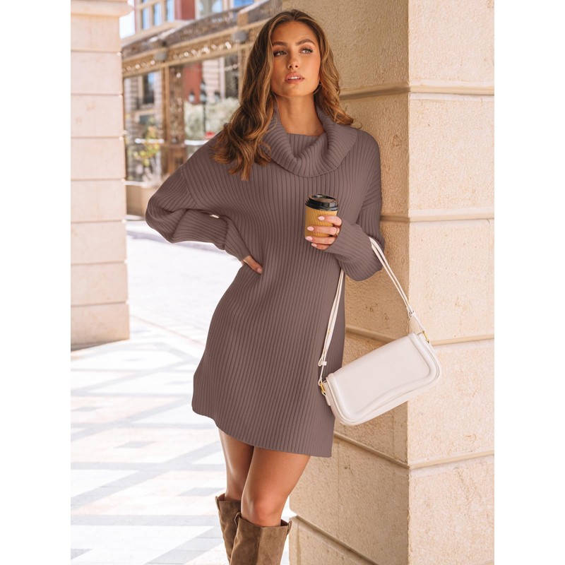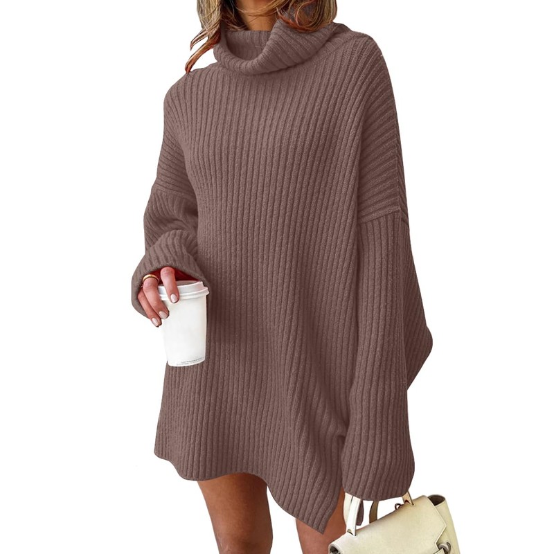 LILLUSORY Womens Turtleneck Oversized Long Sweater Dress 2025 Plus Size Tunic Pullover Knit Fall Dresses Nutmeg XL