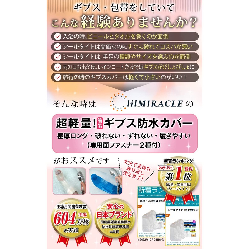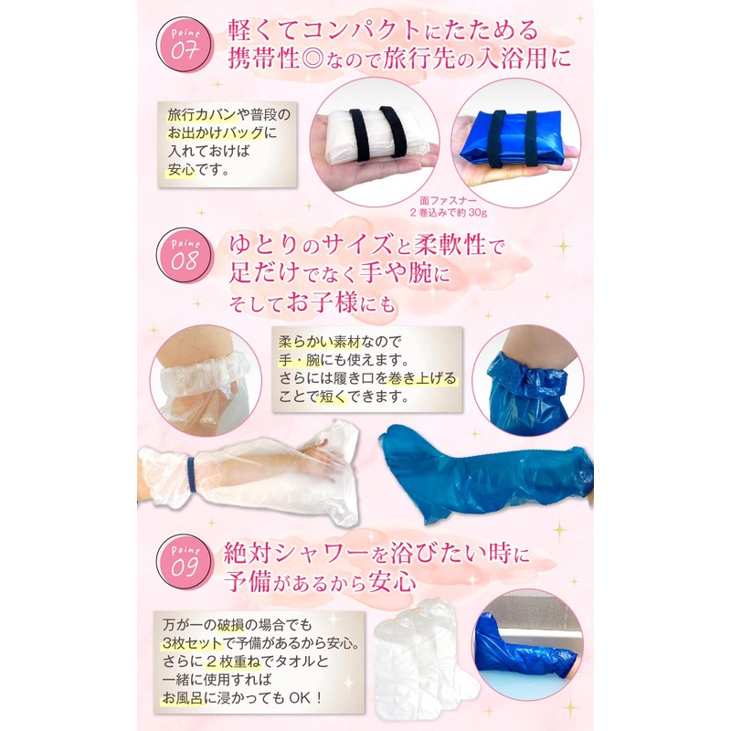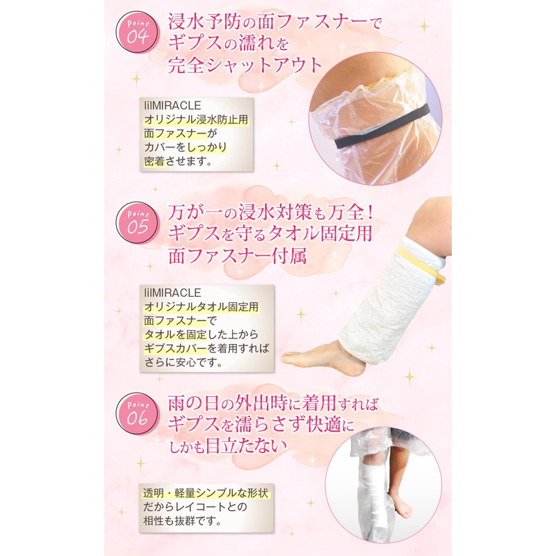 [lilMIRACLE]ギプス 防水カバー 足 手 腕 【国内検査合格】 骨折 お風呂カバー 大人 子供 シャワー ロング 雨(クリア3枚(1ヶ月分))