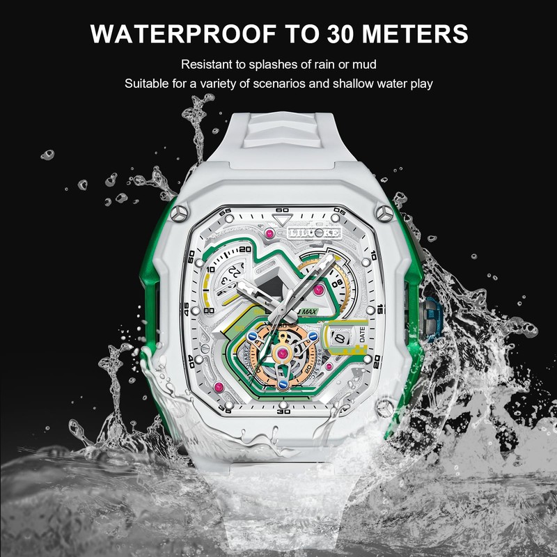LILUOKE Men's Track Racing Watch - Mechanical Dial Design, 30 Meter Water Resistance, Hexagonal Durable Case, High Precision Quartz Movement (DT-LK9020G-02)