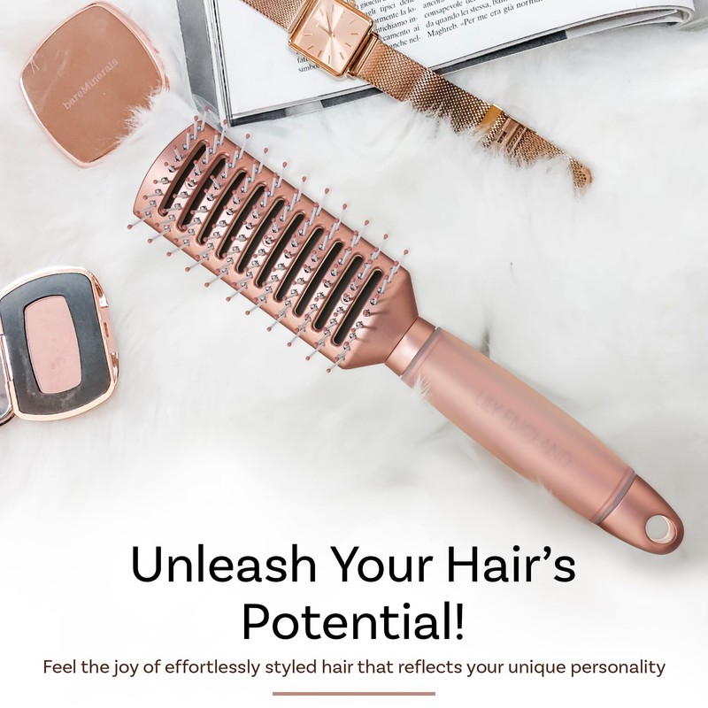 Lily England Vented Hair Brush for Blow Drying - Easy Detangling Hairbrush for Women for Fine, Thick, Curly Hair with Non-Slip Gel Handle - Static Free Vent Hair Brushes for Faster Drying, Rose
